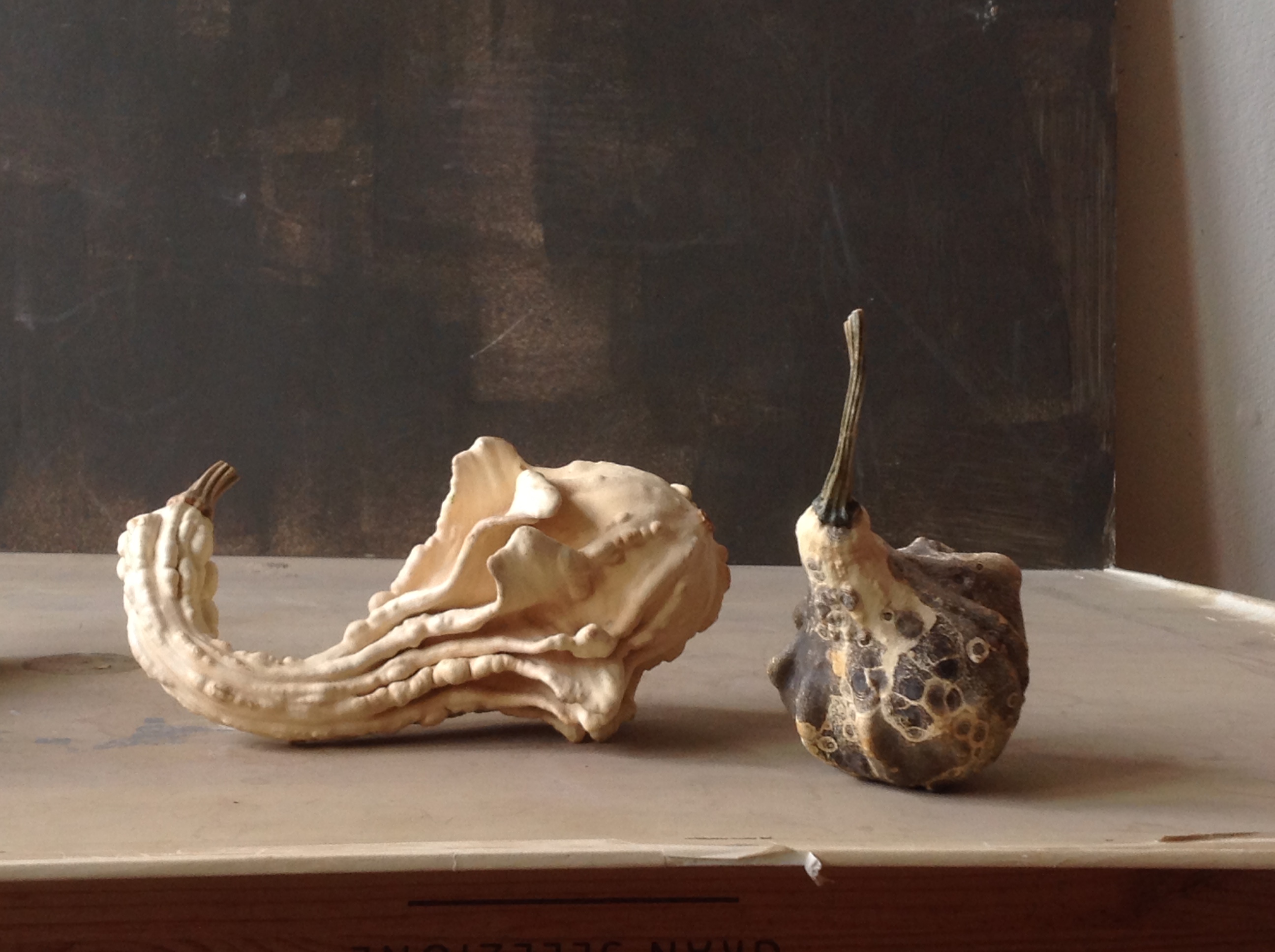 In this three-day class, Kathleen constructs and paints a harvest still life. Observing the subject in natural light allows you to see how she uses a color checker and sets a palette.