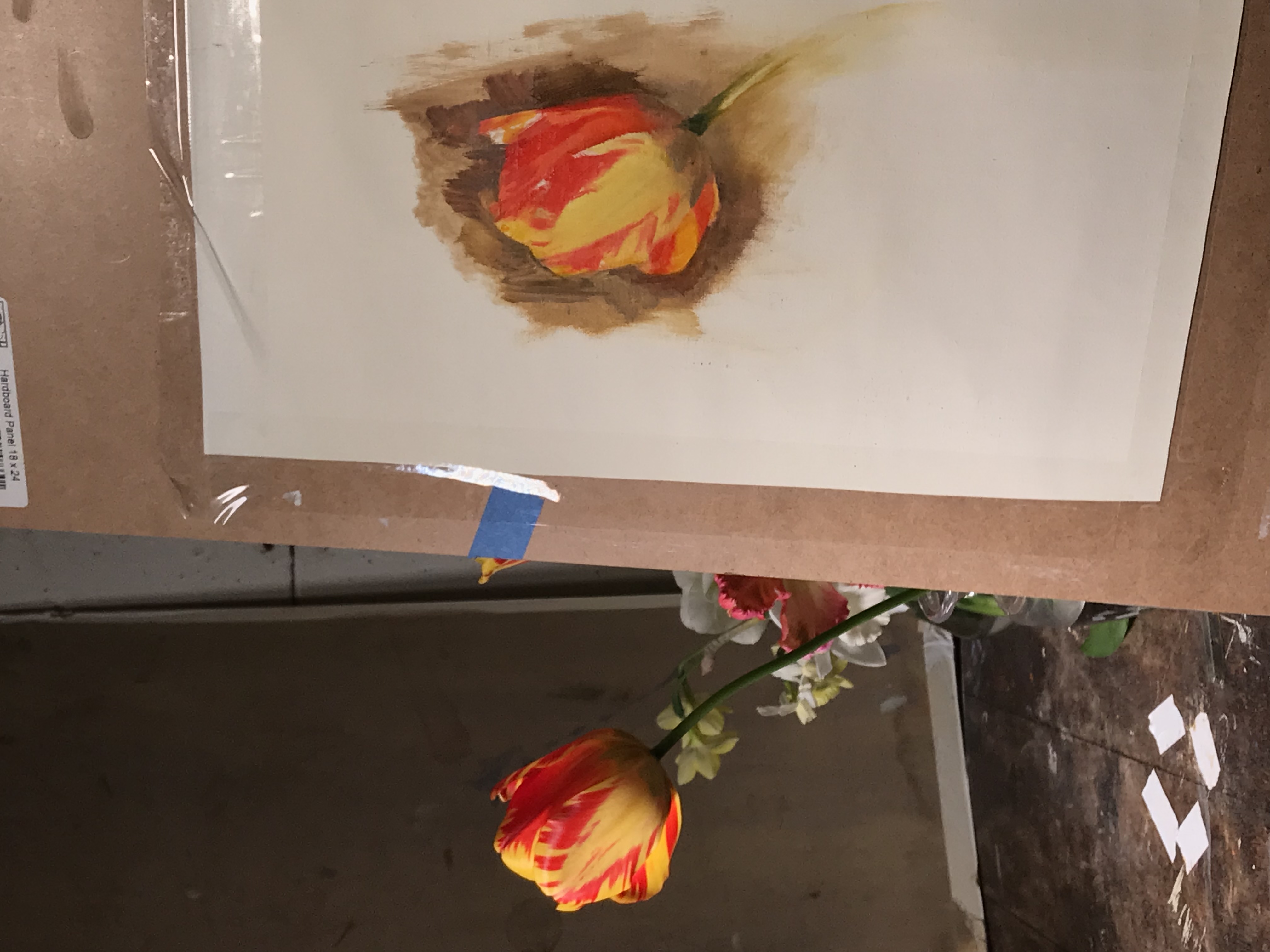 Session 1: Kathleen observes daffodils in natural light, sets a palette, and completes a gestural painted "sketch" of the flower.